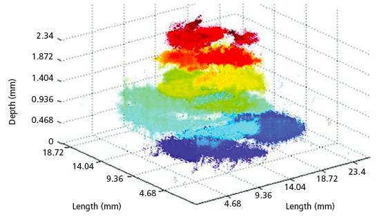 NASA’s Langley Research Center has developed a new Non-Destructive Testing (NDT) method for identifying and characterizing hidden damage in composite materials. The new technique requires only single-sided access to the test specimen, and uses trapped energy analysis to detect and characterize damage that was previously ob - scured. Current methods, usually ultrasound or laser ultrasound, cannot characterize imperfections below or hidden by near surface damage. The new method uses 3D custom ultrasonic simulation tools to study ultrasonic guided wave behavior and energy trapping due to multilayer delamination damage (Figure 1).