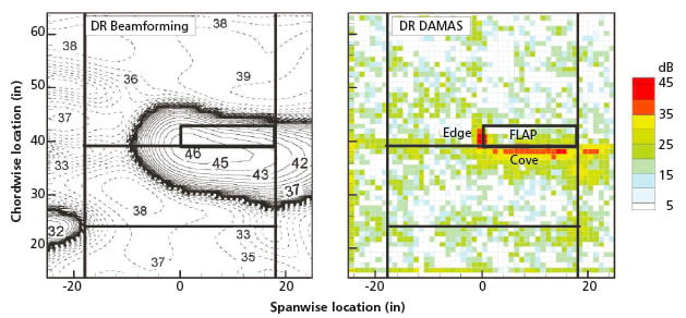 NASA’s Langley Research Center researchers developed DAMAS using an iterative algorithm to deconvolute noise signals, allowing for more accurate quantification of the position and strength of acoustic sources. Recent development of the DAMAS microphone phased array processing methodology allows the determination and separation of coherent and incoherent noise source distributions. The DAMAS technology represents a significant breakthrough in the field of aero-acoustics.