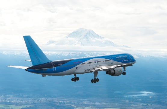 NASA experiments designed to help reduce fuel consumption and emissions flew on a specially outfitted Boeing 757 airplane called the ecoDemonstrator. The first experiment is the Active Flow Control Enhanced Vertical Tail Flight Experiment. NASA worked with Boeing to install 31 tiny jets called sweeping jet actuators that can manipulate, on demand, the air that flows over the ecoDemonstrator 757’s vertical tail and rudder surfaces. An aircraft’s vertical tail is primarily used to add stability and directional control during takeoff and landing, especially in the event of an engine failure. But when the aircraft is cruising at altitude, the same large, heavy tail is not necessary. Engineers theorized they could reduce the size of the vertical tail by using the sweeping jets to generate the same side force during takeoff and landing that a larger tail does. That would reduce the weight and drag of the airplane and decrease its fuel consumption.