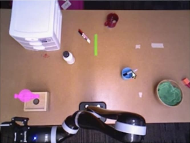The traditional interface for remotely operating robots employs a computer screen and mouse to independently control six degrees of freedom, turning three virtual rings and adjusting arrows to get the robot into position to grab items or perform a specific task. But for someone who isn’t an expert, the ring-and-arrow system is cumbersome and error-prone. It’s not ideal, for example, for older people trying to control assistive robots at home.