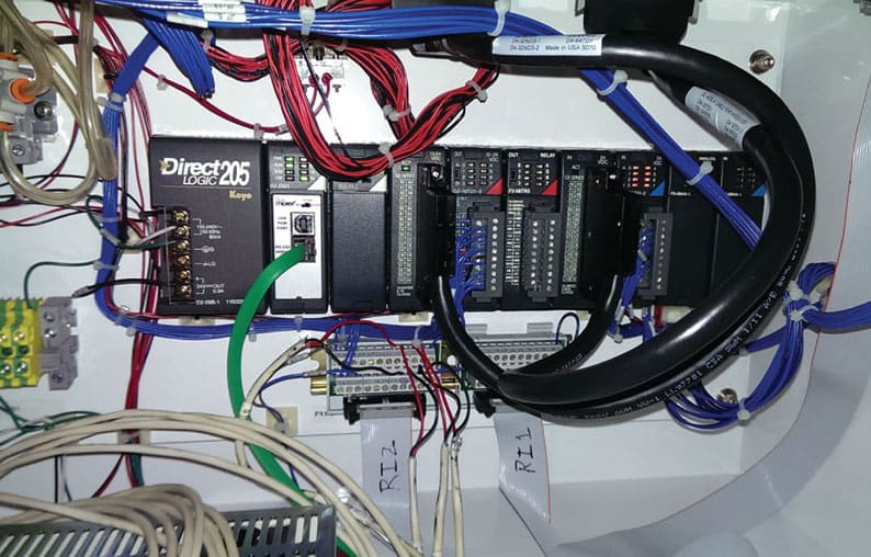 The mechanical components of the VMBs were still in good condition, so there was no need to replace them. But in addition to the PLC CPU, the existing 12-year-old human/machine interface (HMI) had to be replaced as well because it did not have a driver for communications with the new CPU. Replacing the existing HMI would simplify integration with the CPU, and would allow for addition of new features, along with extending service and support. Because the new PLC works with the existing AutomationDirect DirectLOGIC DL205 hardware, no I/O modules in any slots of the CPU base had to be changed, and all wiring remained intact. This backward compatibility between the new CPU and the existing I/O greatly simplified the upgrade, reduced costs, and expedited the entire project.