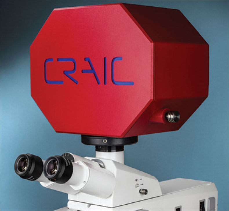 Featuring CRAIC Technologies’ Lightblades™ spectrophotometers and proprietary optical interface technologies, the 308 PV can acquire spectra of microscopic sample areas by absorbance, reflectance, polarization, luminescence, and fluorescence, in addition to high-resolution color images, when attached to properly configured microscopes.