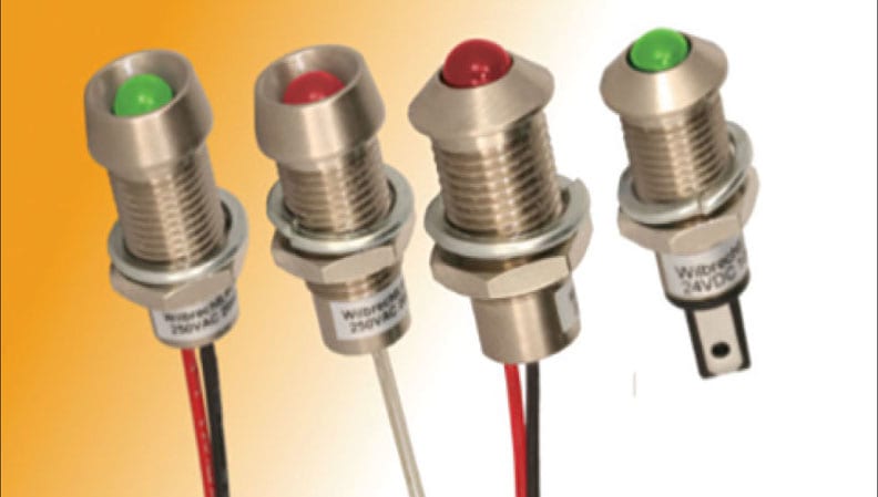 Wilbrecht LEDCO, Inc. (St. Paul, MN), a Microprecision Electronics company, has introduced a new long-body nickel-plated panel mount LED. The housing is designed to easily fit panel thicknesses of up to 9.0 mm even with additional gasket. The front-mounted prominent and recessed bezel shaped forms come with termination options leads or Faston-style quick connects. The fully potted leads version with additional gasket offers front and backside IP67 sealing for water resistance and outdoor use.
