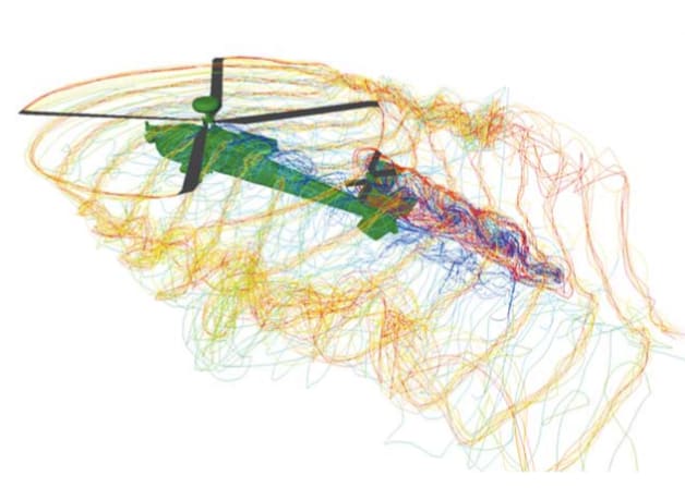 According to CDI, CHARM features the most advanced free vortex wake model currently available that directly computes wake roll-up and vortex core properties from first principles. In addition, no empirical constants are required, which is a distinct advantage for design work and modeling transient maneuvering flight for which wake characteristics are continually changing. The software code has also been coupled with acoustic prediction software to provide fast prediction of rotor loading and thickness noise.