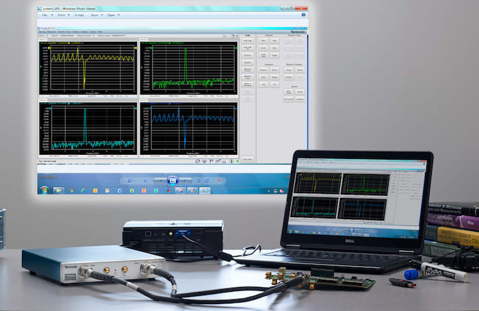 Tektronix, Beaverton, OR, introduced the TTR500 Series USB vector network analyzer, a USB-based RF test instrument. It includes VectorVu-PC analysis software and built-in bias tee for testing active devices. The 2-port, 2-path S-parameter VNA features 100 kHz to 6 GHz frequency range, 122 dB dynamic range, less than 0.008 dB trace noise, and -50 to +7 dBm output power. The built-in bias tee allows for 0 to ± 24V, and 0 to 200 mA on both ports for active devices. The analyzer operates with any Windows PC or laptop, and VectorVu-PC software controls and calibrates the instrument. For automated test systems in design or manufacturing, the software offers programmatic support for SCPI commands, including command compatibility with common legacy VNAs for integration into existing test systems. In addition, the software offers an offline mode for data analysis with an output file format compatible with common EDA simulation tools. Accessories include a rugged carrying case, rack mount kits, phase-stable cables, attenuators, adapters, and calibration kits.