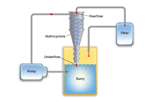 In addition to a conical separator vessel typical of a hydrocyclone, the HFE includes a pump, a sample container, an electropositive nanoparticle filter, and associated plumbing (see figure). The hydrocyclone serves to separate both cellular-sized particles (
