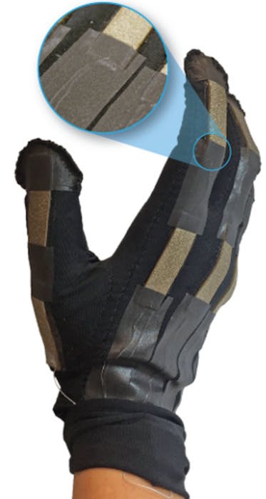 To test the sensors in a real-world scenario, a set of the sensors was integrated into a glove to measure fine-motor hand and finger movements in real time. The sensors were successfully able to detect capacitance changes on individual fingers as they moved, indicating their relative positions over time.
