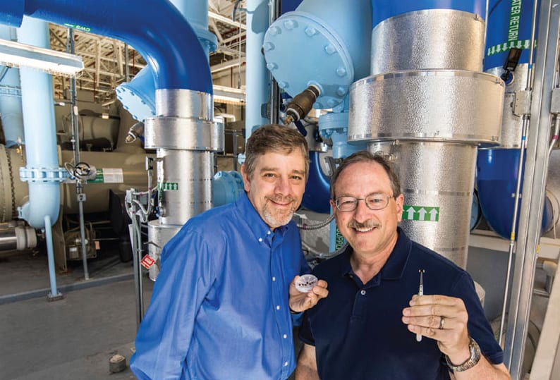 Initially, Sandia's newest and smallest SAWs used higher frequency vibrations with more advanced microelectronics. However, they were also more expensive, harder to make, and less reliable. Using larger devices, roughly the dimensions of a Tic Tac, that were state-of-the-art in the '90s, it was easy to apply the coating — which increased the sensitivity a thousand times more than decreasing the size — and dramatically decreased the cost of the device. The latest version of the analyzer can automatically monitor individual trihalomethane levels every hour.