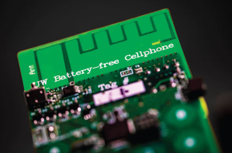 University of Washington researchers have developed a prototype cellphone that requires no batteries; instead, it harvests the few microwatts of power it requires from either ambient radio signals or light. Skype calls were also made using the phone, demonstrating that the prototype — made of commercial off-the-shelf components — can receive and transmit speech and communicate with a base station. The cellphone takes advantage of tiny vibrations in a phone’s microphone or speaker that occur when a person is talking or listening to a call. An antenna connected to those components converts that motion into changes in standard analog radio signals emitted by a cellular base station. This process encodes speech patterns in reflected radio signals in a way that uses almost no power.
