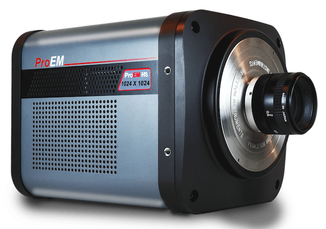 Princeton Instruments (Trenton, NJ) has introduced the ProEM-HS:1KBX3-10μm 1 megapixel, 10 μm x 10 μm pixels EMCCD camera. This addition to the ProEM®-HS product line utilizes both low-noise readout electronics and Princeton Instruments’ patented eXcelon®3 (X3) fringe-suppression technology to deliver single-photon sensitivity. The ProEM-HS:1KBX3-10μm delivers 30 fps at full 1024 x 1024 pixel resolution and <1 e- rms effective read noise, all at 36.67 MHz readout speed. Its custom CCD readout mode is specially designed to deliver more than 4,800 fps with reduced ROI, whereas its special kinetics mode delivers more than 119,000 spectra/sec.