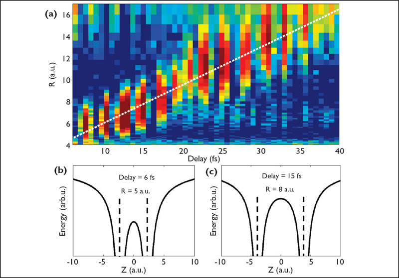 That electron sharing is responsible for the chemical bond that binds the protons together to form the molecule. The scientists made that molecule dissociate and observed how soon the electron would ‘decide’ at which proton it will remain. That is called ‘electron localization’ or loss of sharing and it signifies a breakage of a chemical bond.