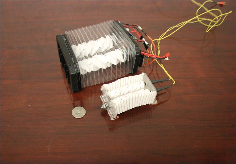Wissa: Because the body is deformable — and the origami is made from paper and is soft — we can really go into tight spaces. So, we can use this for pipe inspection, for example. Pipes have different kinds of diameters, and you want something that can fit in there with ease.