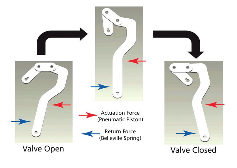 NASA’s Marshall Space Flight Center scientists have invented a novel valve actuator where the primary actuating system and return spring system are arranged non-collinearly. In the past, valve actuators have employed pressureactuated piston and return spring systems with a linear arrangement that requires bulky return springs.