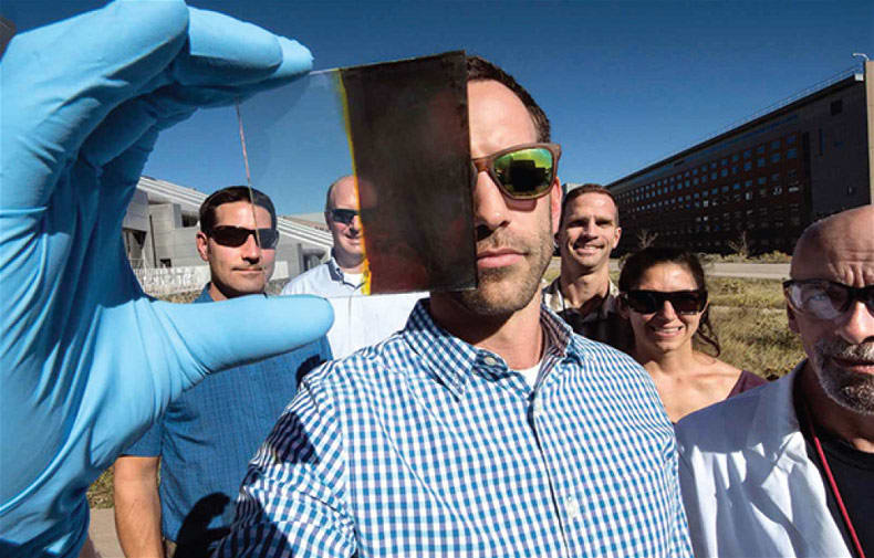 Thermochromic windows capable of converting sunlight into electricity at a high efficiency have been developed by the U.S. Department of Energy's National Renewable Energy Laboratory (NREL). Relying on advanced materials, the new technology responds to heat by transforming from transparent to tinted; as the window darkens, it generates electricity. The device allows an average of 68% of light in the visible portion of the solar spectrum to pass through when it's in a transparent state. When the window changes color — a process that takes about three minutes of illumination — only 3% is allowed through the window. The electricity generated by the solar cell window could charge batteries to power smartphones or onboard electronics such as fans, sensors, and motors that would open or close the windows as programmed.