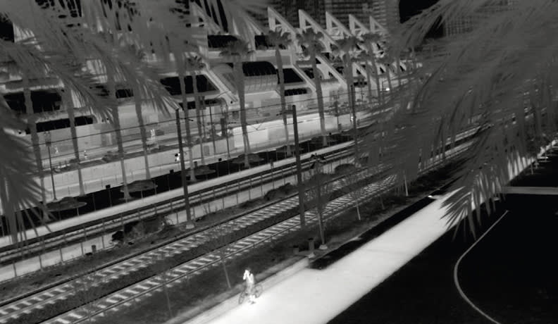 Small pixel, uncooled microbolometer FPAs for “performance applications”, that is, VGA resolution of 640 × 480 or higher, are still not common. There are small pixel VGA devices available, as well as very high-resolution sensors. As an industry, however, small pixel VGA is still in early development. There are not many small pixel optics available, and there are very few small pixel cameras available for purchase with standard video interfaces. The only VGA resolution, or higher, uncooled microbolometer cameras available are end-user items, such as rifle scopes and commercial cameras with 1920 × 1200 × 12 μm resolutions with very advanced features (Figure 2 - Video still from Vayu HD of San Diego's trolley tracks and convention center).