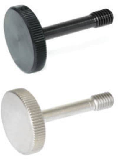 JW Winco, A Ganter Company (New Berlin, WI), offers GN 653.2 steel and stainless steel flat knurled thumb screws with recessed stud for loss protection. When using, instead of a tapped and bored hole, it is necessary to provide tapped bores with a thread on each of the two elements to be assembled. Additionally, a clearance bore on one or both sides is required. The steel thumb screw body with a black oxide finish has tensile strength of class 5 and the visible face is fine turned. The stainless steel version is made of 303 stainless steel and comes with a matte, shot-blasted finish.