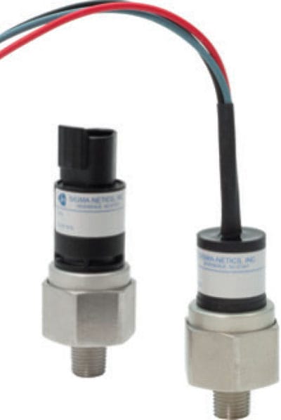 Sigma-Netics (Riverdale, NJ) offers the 745 and 785 Series diaphragm-operated ruggedized pressure switches designed for low-pressure, high-sensitivity applications including industrial OEM equipment, braking systems, compactors, compressors, and fuel systems. For maximum environmental protection, the 785 model is equipped with a 2- or 3-pin Deutsch connector. Compliant with IP67 standards, both models have a temperature range of -40 to +250 °F, and are designed for use in environments containing oil, fuel, water, dust, vibration, or shock. Custom configurations are available.