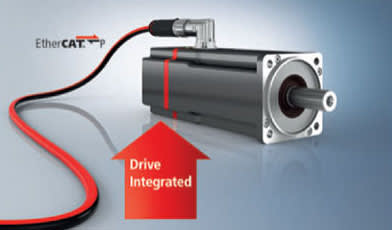 The AMP8000 distributed servo drive system from Beckhoff Automation (Savage, MN) integrates a servo drive directly into a servomotor, and features a compact design. By relocating the power electronics directly into the machine, a control cabinet only needs to house a single coupling module in order to supply power to multiple servo drives with a single cable via the distribution module. Via EtherCAT P technology that provides EtherCAT signals and power over one cable, a coupling module can control up to five distributed servo drives via an IP 67-protected distribution module. The system is available in flange sizes F4 and F5. Various models are available with power ratings from 0.61 to 1.23 kW and standstill torque ratings from 2.00 to 4.8 Nm (F4), or power ratings from 1.02 to 1.78 kW and standstill torque ratings from 4.10 to 9.7 Nm (F5).