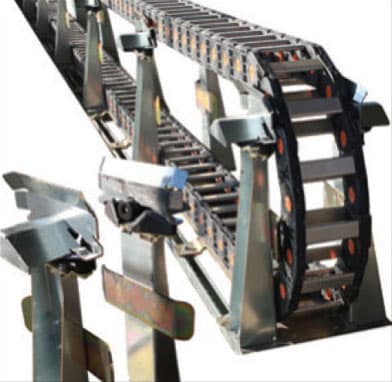 Dynatect (New Berlin, WI) introduced the Gortrac® Articulated Roller Support (ARS) Long Travel System, a cable carrier solution. The system is intended for applications up to 300 feet, and eliminates wear and tow force spikes from alignment or failure of guide troughs, glide shoes, and push plates. The articulating roller supports are mechanically actuated by the curve of the cable carrier as it passes through the supports. These supports allow passage of the cable carrier as it travels, and in turn provide support throughout the travel of the system. The system supports high-load, high-acceleration, and high-speed (greater than 5 feet/second) applications. Installation accommodates many styles of plastic cable carrier.