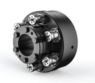 R+W America (Carol Stream, IL) introduced two STN series safety couplings with conical clamping hubs for overload protection. The two sizes (2 and 5) cover disengagement torques ranging from 200 to 5,000 Nm, and shaft diameters from 45 to 80 mm (1.750 to 3.125"). Featuring a ball-detent safety element system, the driving and driven ends separate within milliseconds of a torque overload, releasing the motor inertia from the driveline. The driveline is free to coast to a stop after disengagement, and re-engagement requires that a force be applied to the back sides of the plunger modules, either with a mallet or pry bar. Disengagement torque values are adjustable in the field, and multiple ranges are available depending on the module configuration. The couplings are designed with an output flange that can connect to a pulley or sprocket. Shaft-to-shaft connection methods are also available with disc, elastomer, bellows, or gear coupling designs.