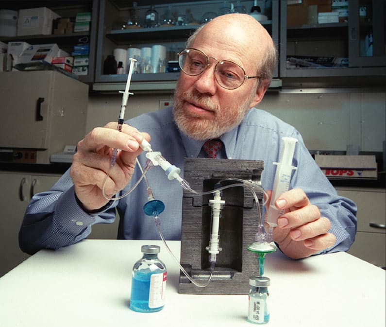 A nonsurgical laser technique for determining whether esophageal tumors are benign or cancerous was developed in the 1990s. This optical biopsy sensor uses an endoscope, optical fibers, laser light, and algorithm to gather and compare fluorescence patterns in the esophagus (which differ for normal and malignant tissue).