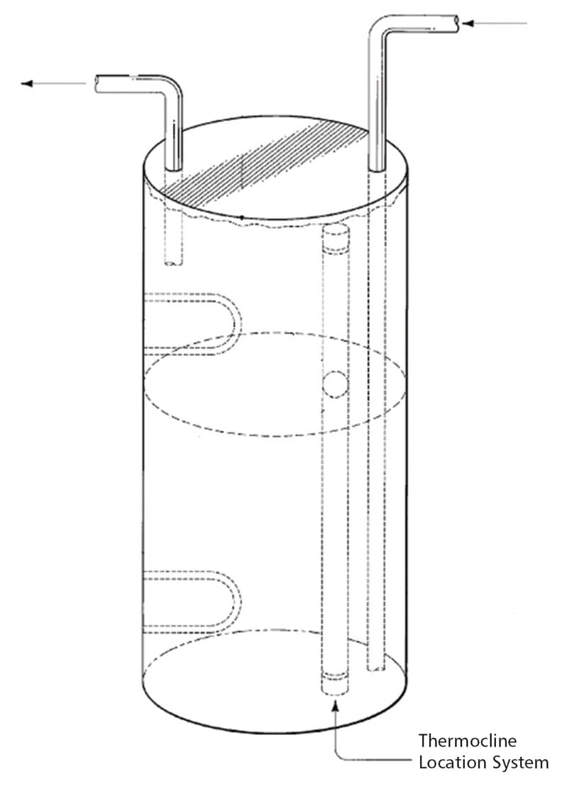 The system comprises four components: a reservoir to hold the medium, a control system that can adjust the temperature of the medium, a location system to follow the thermocline, and a monitoring system that provides information on the state of the system. The thermocline location system includes a position-indicating object that moves through the reservoir with the thermocline and sends a signal to the monitoring system. The four components work together to identify an optimum heating approach, decreasing energy consumption while providing sufficient heated medium as needed.