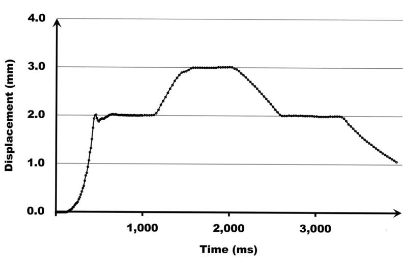 Figure 4 illustrates an example of a SMA-based actuator, powered by 120 VAC and connected to a 725-N (163-lbf) load, responding to three positional step changes. While position feedback is the most obvious telemetry to apply in a closed loop system, the SMA-based actuators also respond well to control systems that utilize force feedback.