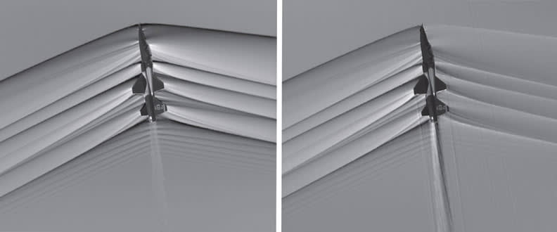 NASA has developed a novel method to render visible the density changes in air that cause a refractive index change by an airborne vehicle. These density changes include shock waves, vortices, engine exhaust, and wakes. The determination of location and strength of shock waves and vortices is fundamental to understanding the flow around an aircraft. These features are strong enough to affect the environment that the vehicle inhabits; for example, they can cause drag and/or produce undesirable noise. The researcher must be able to predict and mitigate the effects of these flow features.