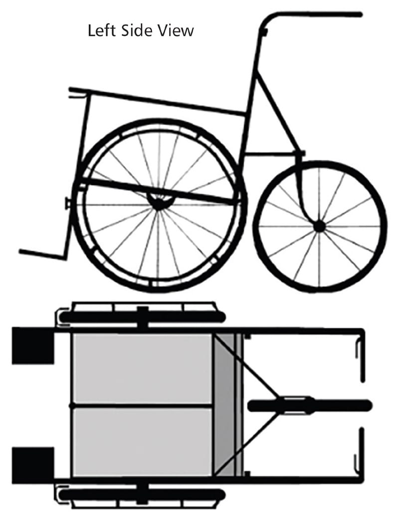 The relatively large size of all three wheels makes it easier to maneuver over a variety of surfaces, and the back wheel can pivot 360 degrees for easy turning. The design is very stable, and the overall chair occupies a footprint only slightly larger than traditional designs. In addition to enhanced performance outdoors, the chair is also ideal for situations where the occupant of the chair is larger than the person pushing the chair.