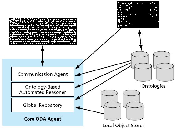 ODII is best summarized in terms of some of the concepts and constructs that have been formalized at various stages of its development. The construct of one of the earlier stages is an ontology-driven information-integration architecture (ODA) based on the concept of an agent (the core ODA agent) that performs the information-integration functions. As depicted schematical- ly in the figure, the core ODA agent comprises a communication agent, an ontology-based automated reasoner, and a global repository.