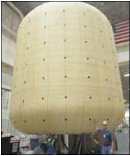 Figure 1 shows a prototype of a large pressure vessel under development for eventual use as a habitable module for long spaceflight (e.g., for transporting humans to Mars). The vessel is a hybrid that comprises an inflatable shell attached to a rigid central structural core. The inflatable shell is, itself, a hybrid that comprises (1) a pressure bladder restrained against expansion by (2) a web of straps made from high-strength polymeric fabrics. On Earth, pressure vessels like this could be used, for example, as portable habitats that could be set up quickly in remote locations, portable hyperbaric chambers for treatment of decompression sickness, or flotation devices for offshore platforms. In addition, some aspects of the design of the fabric straps could be adapted to such other items as lifting straps, parachute straps, and automotive safety belts.