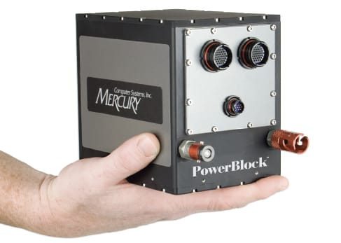 Mercury Computer Systems, Chelmsford, MA, has introduced the PowerBlock™ 50 ultra-compact rugged embedded computer for small platforms in the 6- to 10- pound range. Optimized for real-time image, sensor, and signal processing, and ruggedized for harsh environments, it is programmable and features liquid cooling. The system's modular architecture allows for flexible configurations of multiple processors, delivering over 100 GFLOPS of processing power. A fully configured system weighs less than 10 pounds and measures 4 × 5 × 6". The system is available as a complete software development platform, including the PowerBlock 50 system, Linux BSP development environment, and a desktop heat rejection unit (HRU). The complete platform is customizable into configurations that include PowerQUICC™, Virtex™-4, and Intel processors, and SATA storage. Each configuration includes Gigabit Ethernet and RS-232 I/O interfaces.