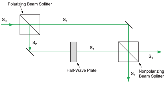 The issue of polarization arises because the performances of many SLMs affect the polarization of output light and are affected by the polarization of input light. Because it is impractical to guarantee the polarization of input light from disparate sources, it would be better to render a crossbar switch insensitive to input polarization. In a crossbar switch according to the proposal, all of the input light would be converted to a single input polarization desired for the SLM by use of an optical assembly like that shown in the figure. The light would be attenuated by a factor of 2 by passage through this assembly, but in a typical case, the disadvantage of this attenuation would be offset by the advantage of obtaining the polarization needed to optimize the performance of the SLM.