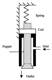 The gaseous hydrogen flow control vale (GH2FCV; see Figure 1) is a critical space shuttle component that controls the pressure of the hydrogen external tank during launch and ascent to orbit. The valve is one of the components that are to be monitored by the Integrated Vehicle Health Monitoring (IVHM) system. The GH2FCV is a two-position valve that is actuated by electromagnetic force acting against a return spring. In the de-energized position, the gaseous hydrogen flow is high; when the valve is energized, flow is reduced. There are three such valves on the shuttle, one connected to each of the three main engines and manifolded together to return hydrogen gas to the external tank (see Figure 2).