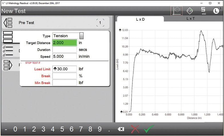 Solutions are now available that extend the traditional force measurement functionality of a force gage. Ensuring data integrity is critical for industries such as medical, aerospace, and automotive where there are strict requirements for capturing data and maintaining testing records. Some force gages function as both a force gage and as a controller for digital force testers. With this technology, the user only needs to set up the gage since the gage has built-in testing templates for common force measurement test methods. Users can perform load limit, distance limit, and break limit testing. Within each test method, the user specifies the digital force tester functionality by using the gage. The user specifies the direction of crosshead motion, the crosshead velocity, and functions such as automatic zero of both force and distance prior to the actual testing, as well as automatic return to zero position once the test has concluded.