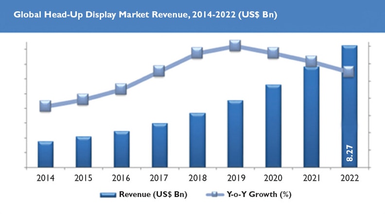 HUDs are a form of augmented reality (AR), as data is being overlaid onto a real-world view. With Industry 4.0 hitting a peak in 2017, the HUD and optical technology market can only benefit from the heightened awareness around technologies that can change everyday life, including AR headsets.