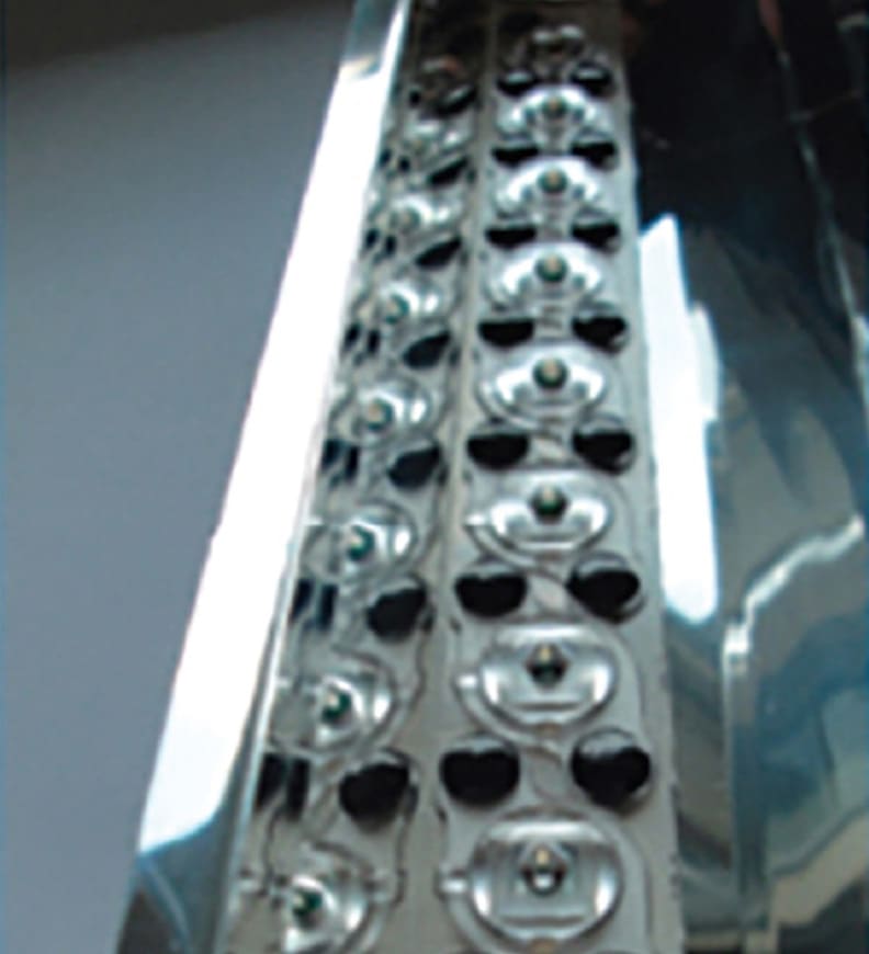 The hybrid scenario can be the most costly since it uses both lenses and reflectors. These systems use reflectors to shape the large angular LED emission pattern and lenses with diffusers on the front of the lenses to create better uniformity, without the harsh LED point source emission. Angled reflector structures provide angular output cutoff to keep the light in the targeted roadway or street area, as shown in the Carclo Technical Plastics design shown in Figure 3.