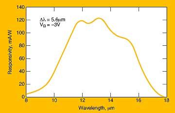 The height of each barrier, and thus the depth of an adjacent well, is determined by the mole fraction (x) of aluminum. The energy heights of ground and first excited states relative to the tops and bottoms of the wells, plus the spectral responses of QWIPs, are determined by the widths of the wells, the thicknesses and heights of the barriers, and the well-doping densities. These thicknesses and compositions can be chosen by design and implemented with established deposition techniques.
