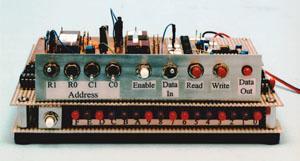 Figure 2. This Prototype 16-Bit MagRAM and Display Unit contains discrete integrated-circuit chips that would be combined into a single chip in an advanced production version.