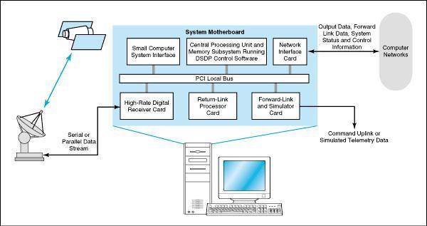 The DSDP Acts as an Earth/Satellite Gateway that communicates with other terrestrial computer systems (from which commands are received and to which telemetry data are delivered) via standard commercial computer-network interfaces.