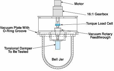 In the original application, for which the V-DIAPER was developed, each damper contains a paddle that, in operation, is rotated through a highly viscous liquid in a chamber. By virtue of the rotation, the liquid is forced through an orifice from the advancing side to the retreating side of the paddle; this action contributes a major portion of the damping torque. The flow of the viscous liquid in the clearance between the paddle and the chamber walls also contributes some damping torque. When the damper is placed in a vacuum, bubbles can form in the damping liquid. The bubbles cause local decreases in viscosity and thus intermittent sharp decreases in damping torque during rotation. The V-DIAPER was designed to facilitate investigation of the effects of the bubbles under realistic vacuum operating conditions.