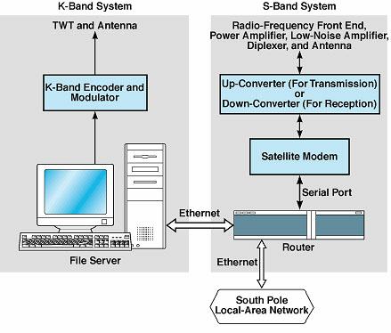 - K-band file-transfer service from the South Pole to White Sands at a rate between 2 and 10 Mb/s, and