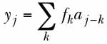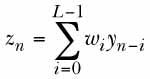 where zn is the complex output sample from the blind equalizer at the nth sampling interval, wi is the ith of L blind-equalizer coefficients, and yj is the jth complex sample from the unknown channel. The latter sample can be expressed as a convolution of the sampled channel impulse response fkwith an unknown sequence of independent and identically distributed source symbolsal; that is,