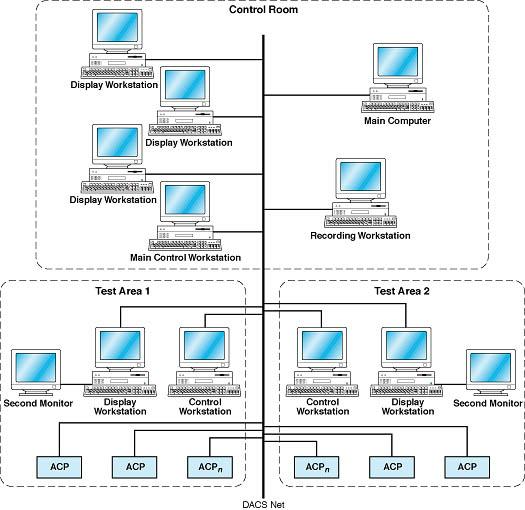 The DACS III (see figure) consists mostly of a network of computers and workstations linked in a manner to provide maximum flexibility. This system has been designed to prevent obsolescence by use of industry-standard components that can be easily replaced when newer versions are introduced. An extensive use of graphical-user-interface (GUI) techniques simplifies test-setup definitions (test scenarios) as well as test operations and troubleshooting. A minimum time of two to three days was needed to generate a scenario for a typical test by use of the previous DACS. Operators can now generate the same test scenario in two to three hours by use of the DACS III.