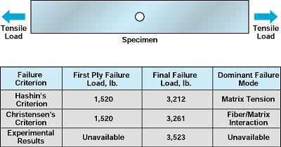 If a failure criterion indicates failure of a lamina, then the mathematically modeled properties of the lamina are changed according to a mathematical submodel of degradation of the affected material properties. When this happens, the initial nonlinear solution no longer corresponds to an equilibrium state, and it becomes necessary to re-establish equilibrium, using the modified lamina properties for the failed lamina while maintaining the current load level. This iterative process of obtaining nonlinear equilibrium solutions each time a local material submodel is changed is continued until no additional lamina failures are detected. However, in this progressive failure methodology, small load step sizes were used instead of the iterative process of obtaining equilibrium solutions to minimize the effect of not establishing equilibrium at the same load level. The load step is then incremented and the foregoing analysis repeated until catastrophic failure of the structure is detected.