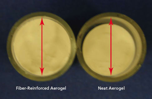 The results indicate that incorporating silica fiber felt significantly reduces shrinkage during the drying process, eliminating it altogether in some cases. While traditional silica aerogels can shrink by approximately 10% after supercritical drying, the fiber-reinforced aerogels show negligible shrinkage. This characteristic allows for the encapsulation of devices with complex geometries without the risk of cracking.