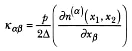 where a = 1 or 2, b = 1 or 2, Καβ is the curvature tensor, p is the grating pitch, and n(α) denotes the cardinal number of a fringe observed in shearing along the xα direction.