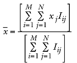 where x̄ and ȳ are the horizontal and vertical COM coordinates, respectively; xj is the horizontal coordinate of the jth column; yi is the vertical coordinate of the ith row; Iij is the level of illumination (or response to illumination) in the pixel in the ith row and jth column; and M and N are the numbers of rows and columns, respectively.