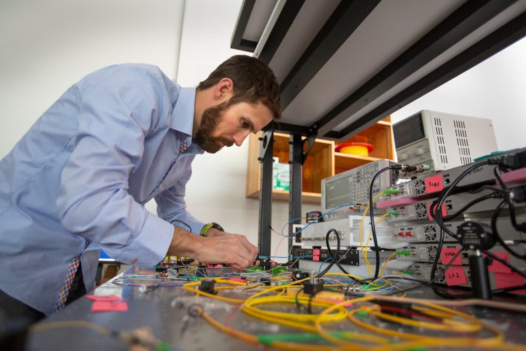 Northern Arizona University assistant professor Ryan Behunin collaborated with a team of physicists from Yale and the University of Texas at Austin in discovering an innovative way to manipulate light in silicon. By demonstrating a new type of laser that amplifies light with sound waves in a silicon chip, the team’s research represents a significant advance in the field of silicon photonics. Having the ability to manipulate light in silicon could potentially represent a game-changer in computer chip technology.
