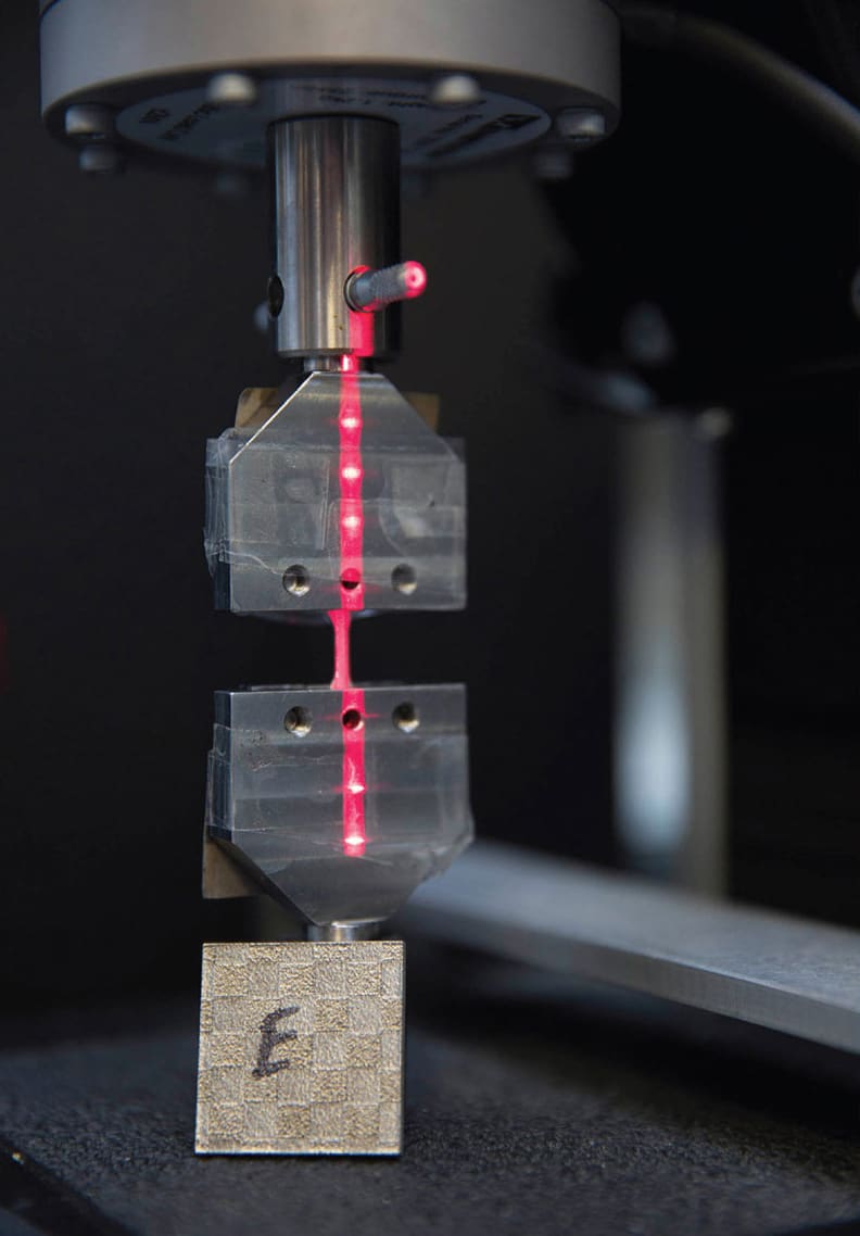 Using two different laser powder bed fusion machines, researchers printed thin plates of stainless steel 316L for mechanical testing. The laser melting technique inherently resulted in hierarchical celllike structures that could be tuned to alter the mechanical properties. When 316L is additively manufactured, it creates a grain structure that resembles a stained-glass window. The grains are not very small, but the cellular structures and other defects inside the grains that are commonly seen in welding control the properties.